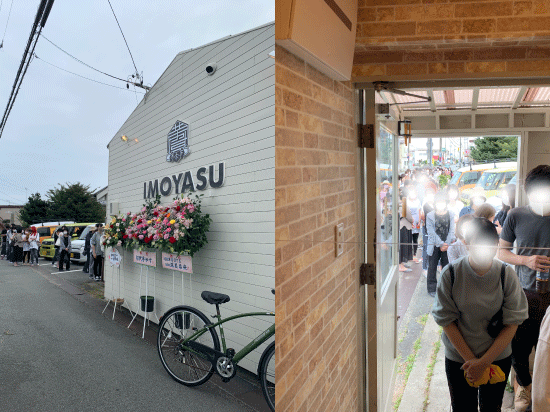6年ぶりの店舗は三重県松阪市、この地元でもまた小さなテイクアウト専門店。オープン日には300名以上のお客様にご来店いただくも、オープンから3時間ですべての商品が完売する事態。スタッフ3名で気持ちも新たに「地元に焼き芋文化を広げよう!」と再出発を果たしました。焼き芋以外にもスイートポテトや鬼まんじゅう、焼き芋サンドや干し芋など、現在でも人気の商品がここで生まれていきます。
